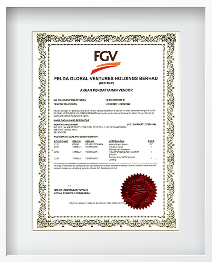 Recognised by Malaysia Government, we are a certified Bumiputera contractor company in our country